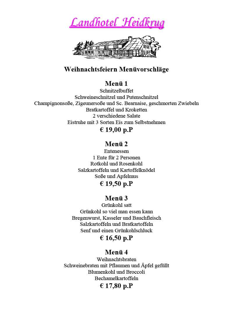 Weihnachtsfeiern Menüvorschläge 2019 Landhotel Heidkrug
